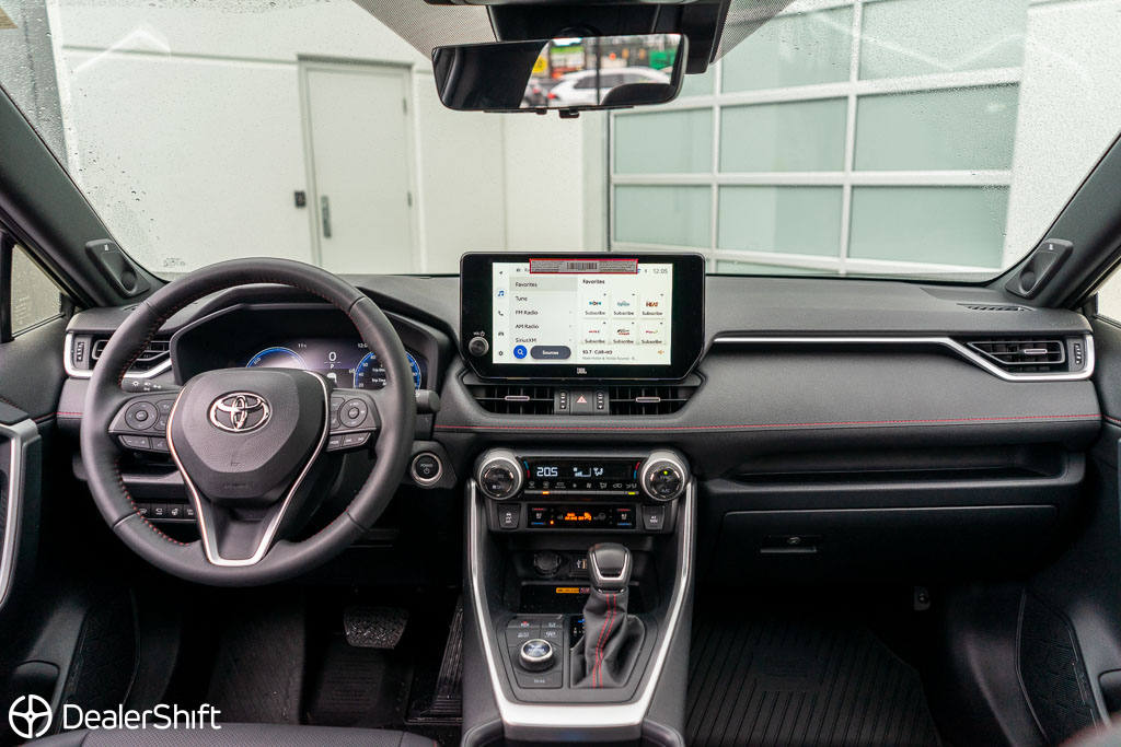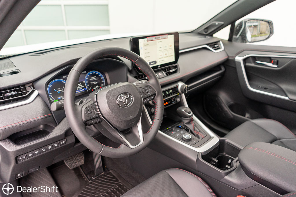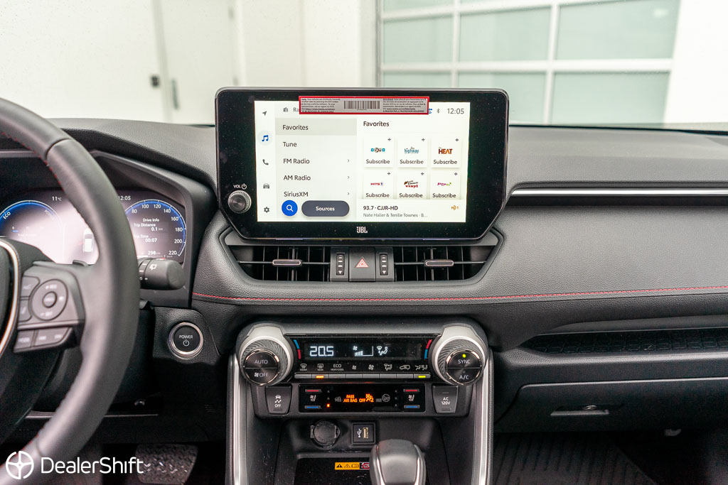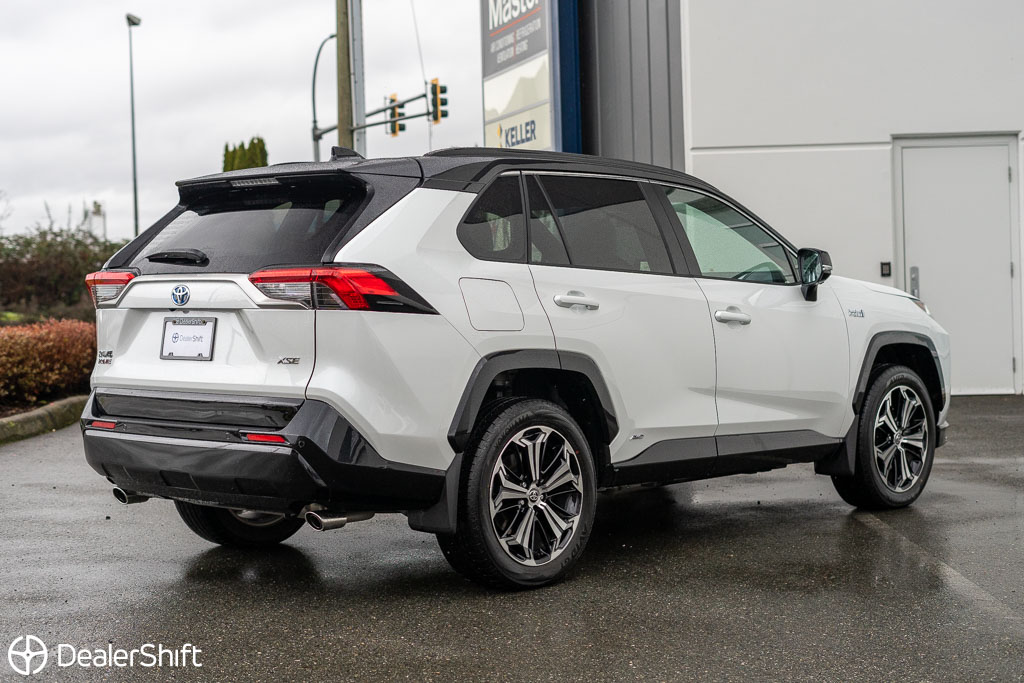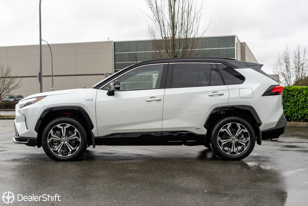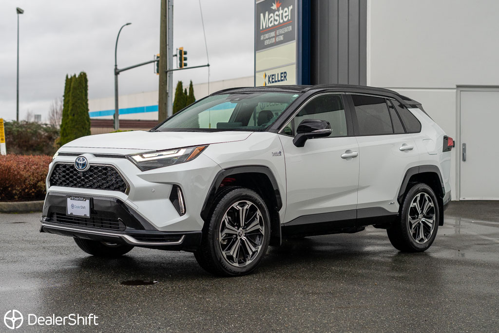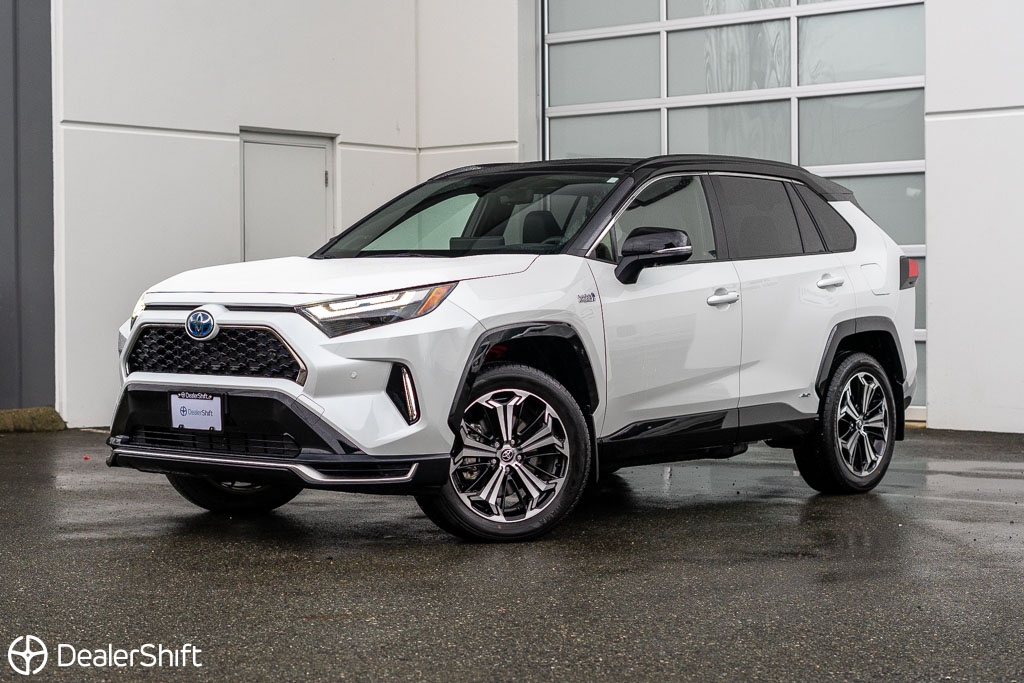 Rav4 Prime Plug-in Hybrid XSE with $5,400 additional Technology package! In like new condition with not a blemish to be found. With 72km of fully electric range. Enjoy 5.9L/100km combined fuel economy when in gasoline mode and 3.5L/100km including EV range. 2.5Hr charge time on 220V Outlet, 12 Hours through standard household 110v outlet. Only 2,300 on this Wind Chill Pearl White example. Standout features on the improved Technology model include: